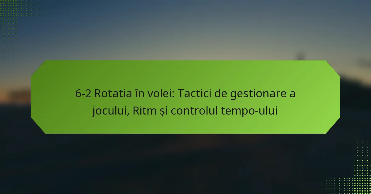 Strategiile eficiente de menținere a tempo-ului în rotația 6-2 în volei se concentrează pe menținerea unui tempo constant și adaptarea la fluxul jocului. Aceste strategii implică gestionarea nivelurilor de energie ale jucătorilor, coordonarea mișcărilor echipei și răspunsul la tacticile adversarilor pentru a menține momentum-ul jocului în favoarea ta.